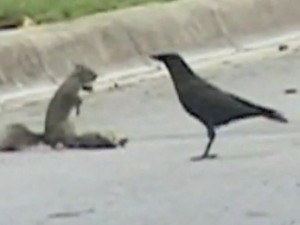 This dead squirrel’s friend goes the extra mile and heroically stands up to a gang of crows who come wanting dinner. A must watch! (I’ll bet you that you show your friends.) Where was this squirrel when I was in middle school?! Remember today, a friend in need is a friend in deed.