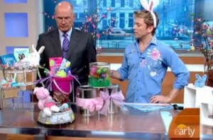 Set your DVRs, ’cause I’ll be hopping onto the CBS Early Show Tuesday 3/30 around 8:30 am with all kinds of Easter fun (and wearing my bunny ears!) Tune in for holiday ideas for you and yours! There’s a rumor I also might be helping Carrie Underwood dress up some of her canine compatriots for a special doggie event. In the meantime here’s a video from my previous Early Show Easter appearance, watch where I try to get Harry Smith try on my Easter bonnet. He’s forgiven me. I’m on around 8:40! Please tell your peeps!