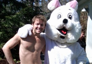 EASTER BUNNY HOPS BY EDGEWATER FARM. Today, we were working on the farm (spreading 21 bags of mulch, readying the vineyard for the arrival of 75 grape vines, and tilling the vegetable garden), when what hops down the driveway… but the EASTER BUNNY! Bunny stayed long enough for photos, but then hopped back up the driveway and down the road. I have no clue who it was, but all I can say, is “Thank God for FUN friends.” Check out this 81-year-old granny bunny who for the past 29 years has been hopping by each Easter to entertain the kids (and kids at heart) of Iowa. Hippity-hoppity! I love people like this. Did you do something fun today? Happy Easter!